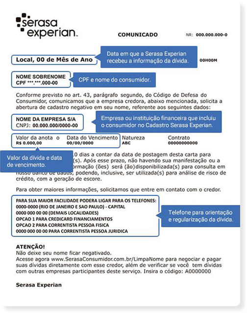 Completa administração de inclusão e exclusão. Emissão de Carta-comunicado que informa o cliente sobre o débito, com informações para contato com o credor da dívida.Somos um distribuidor autorizado da Serasa Experian que atua na área de informações e análise de crédito para todos os segmentos. Reunimos uma série de soluções em serviços de alta análise para todos os tipos e níveis de clientes e ramos atividades.